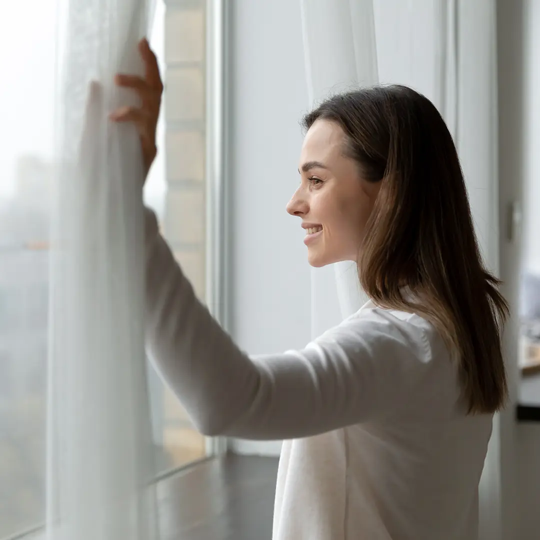 Het slanke frame wordt volledig ín het kozijn geplaatst en valt nauwelijks op. Je kijkt vrij naar buiten, zonder dikke randen of uitstekende onderdelen die het zicht verstoren. De hor integreert volledig met je raam.